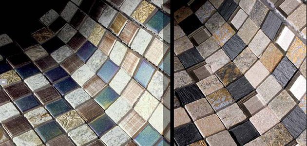 materiales para la decoración como lava, cenefas de cristal, perfiles, mamparas